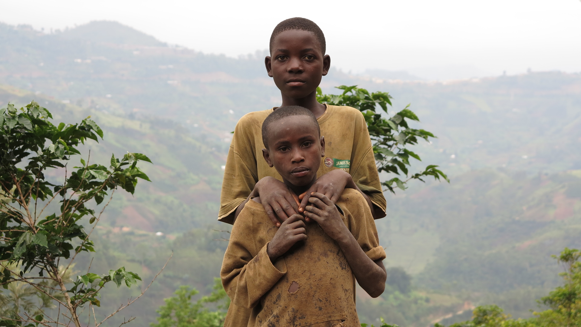 Wir fahren mit unseren Fahrrädern auf roten Lateritböden entlang von alttestamentarischen Lehmhütten mit Rindern und Ziegen. Es gibt überall Menschen, vor allem Kinder. Aus den Klassenzimmern ertönen afrikanische Lieder. Sobald die Schwarzen uns sehen rufen sie aufgeregt "Mzungu" - so werden die Europäer bezeichnet. Bei jeder Steigung laufen Kinder neben uns her. Wir können uns kaum im Schatten ausruhen. Es kommen von allen Richtungen Menschen auf uns zu und starren uns an. Wir fahren weiter, es ist wie auf der Flucht. Wir haben aber nie das Gefühl, dass die Situation gefährlich werden könnten. Wir fühlen uns sehr sicher. (…)